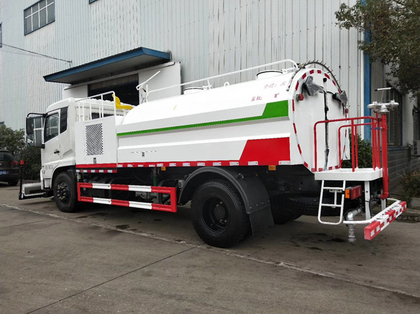 灑水車吸程≧7米,灑水寬度≧14-16米,射程≧25-40米,引水時(shí)間<5min,流量60m3/h。前沖(噴)、后灑、帶側(cè)噴(花灑)、帶后工作平臺(tái)、平臺(tái)上安裝綠化灑水高炮(炮噴射形狀可調(diào)節(jié):直沖、大雨、中雨、毛毛雨、霧狀、可連續(xù)調(diào)節(jié),360°旋轉(zhuǎn)),配消防接口,自流閥,濾網(wǎng),帶自吸自排功能。配備大功率專用灑水泵,泵可自吸自排,安裝過濾網(wǎng),帶消防接口,可通過消防栓進(jìn)水,帶自流閥,隨車選裝20米綠化卷盤,可噴灑農(nóng)藥,罐體金屬漆。罐體有橢圓和方圓罐兩種,可根據(jù)用戶的要求定做