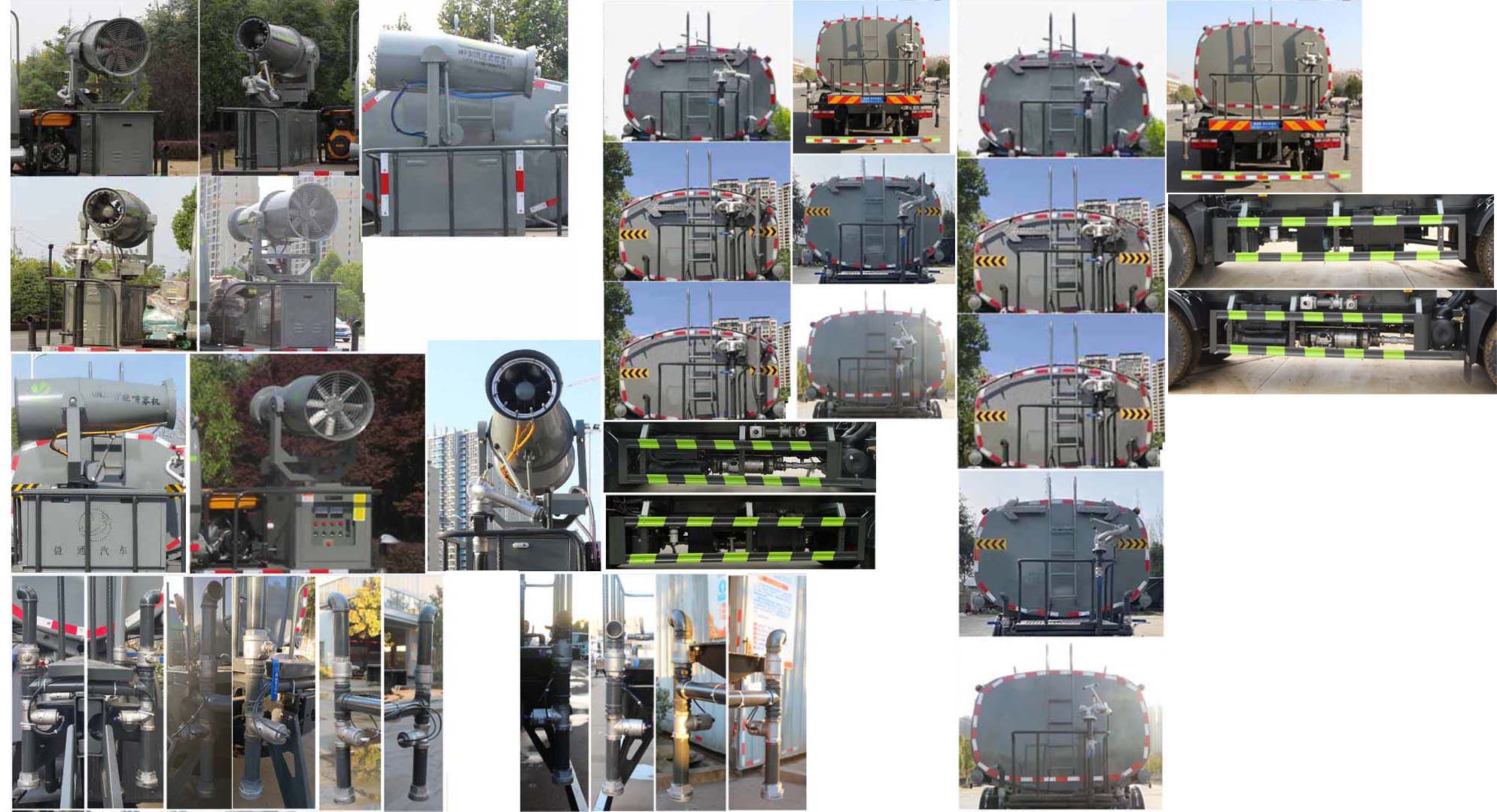 我公司產(chǎn)品標配前噴(鴨嘴)、后沖、后灑、側(cè)噴、后置式工作 平臺,平臺上配置綠化水炮(可 360°旋轉(zhuǎn),既可以調(diào)成柱狀,也可 以調(diào)成霧狀,更可以調(diào)成直沖狀、大雨、中雨、小雨、毛毛雨),配 備優(yōu)質(zhì)大功率專用灑水泵(可自吸自排,可從河里或池塘抽水到罐體), 取力器,雜物過濾網(wǎng),消防接口,自流球閥系統(tǒng)、取力器、球閥、濾網(wǎng) 均為國家標準產(chǎn)品,主管道加粗,法蘭墊、法蘭盤加厚,大通徑球閥。 整體具備性能優(yōu)良安全可靠、效率高、流量大、維修方便等特點。