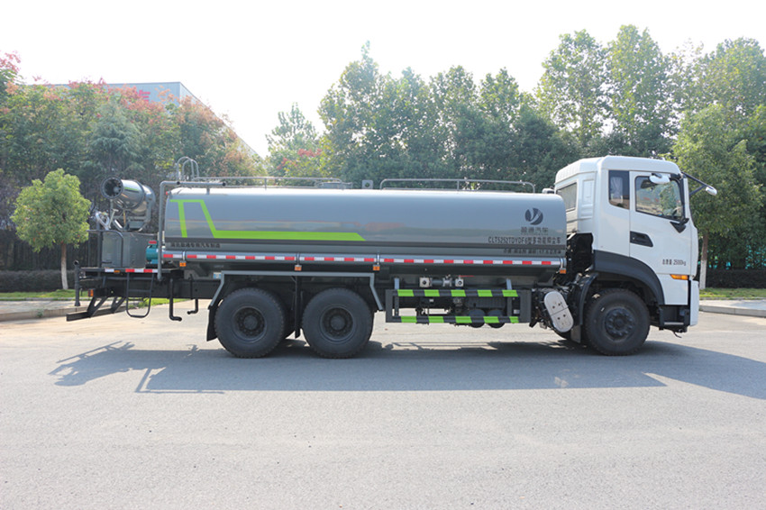 東風天龍20方霧炮灑水車底盤配置: 發(fā)動機康明斯 290 馬力(六缸),大同 7 檔變速箱,D320 排半 豪華 KL 駕駛室,5.5T 前橋,雙 10T 后橋,295 真空胎,軸距 4350+1350, 300 雙層大梁,電動玻璃,中控,氣囊座椅,空調(diào),行車記錄儀。