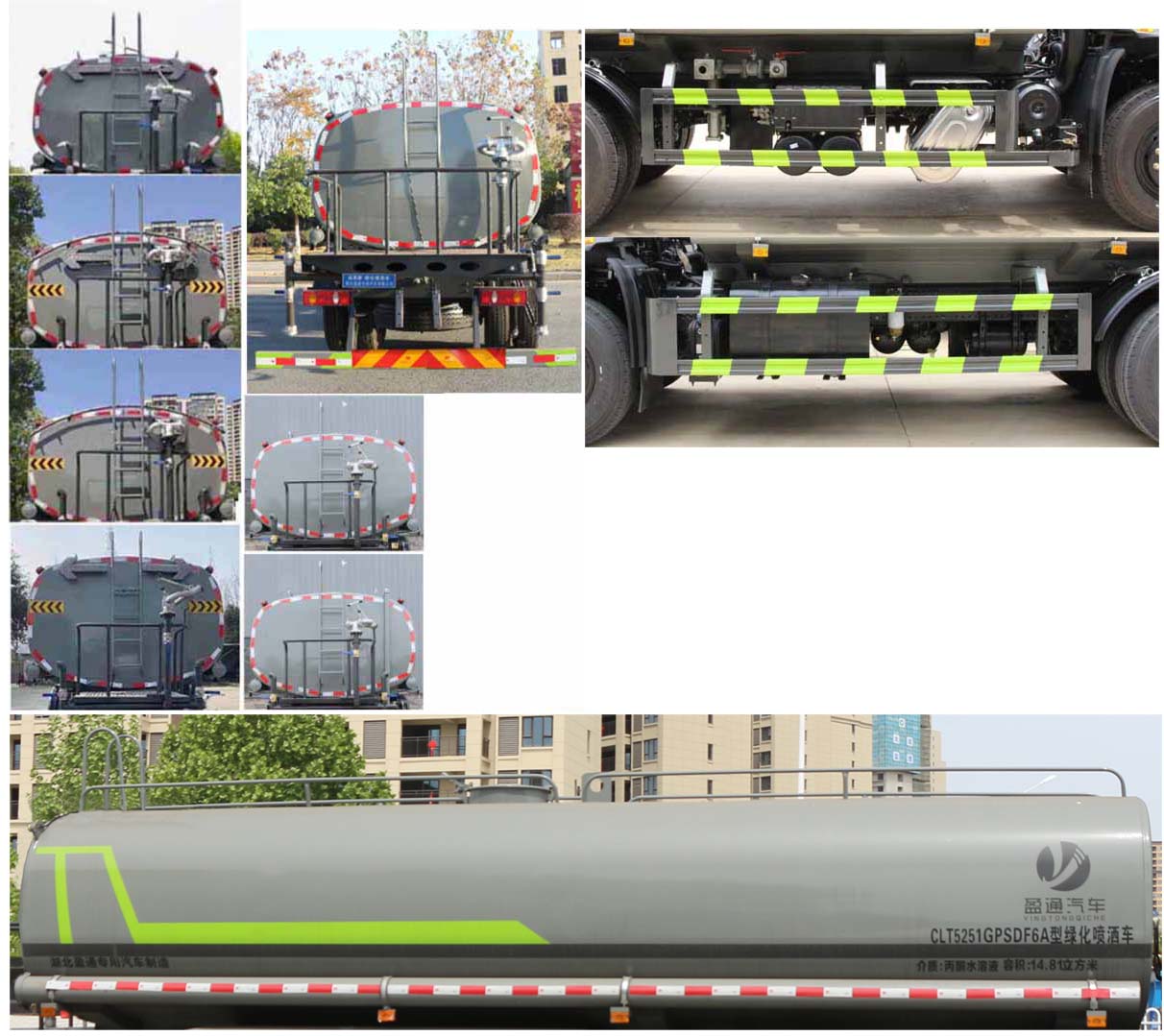 備注 | 該車主要用于城鄉(xiāng)園林綠化噴灑,噴藥;主要裝置為罐體及噴灑裝置;隨底盤選裝駕駛室;罐體總?cè)萘?14.81立方米,罐體有效容積:14.11立方米,罐體外形尺寸(長×長軸×短軸)(mm):6800×2390×1620,6700×2400×1480;側(cè)、后防護(hù)材料均為:Q235,連接方式均為:螺栓連接,后部防護(hù)截面尺寸(mm):120×50,后部防護(hù)離地高度(mm):460;ABS型號/生產(chǎn)廠家:3631010-C2000/東科克諾爾商用車制動系統(tǒng)(十堰)有限公司,J ABS/焦作博瑞克控制技術(shù)有限公司.采用底盤4350+1350(mm)軸距。選裝擋泥板樣式。選裝后部箭頭燈,選裝后部弧形噴灑裝置,選裝后部樣式,選裝水炮支架位置,選裝自動球閥安裝位置。選裝不同外觀的后處理,選裝油箱電瓶位置,選裝罐體頂部不帶高位花灑裝置。 | ||