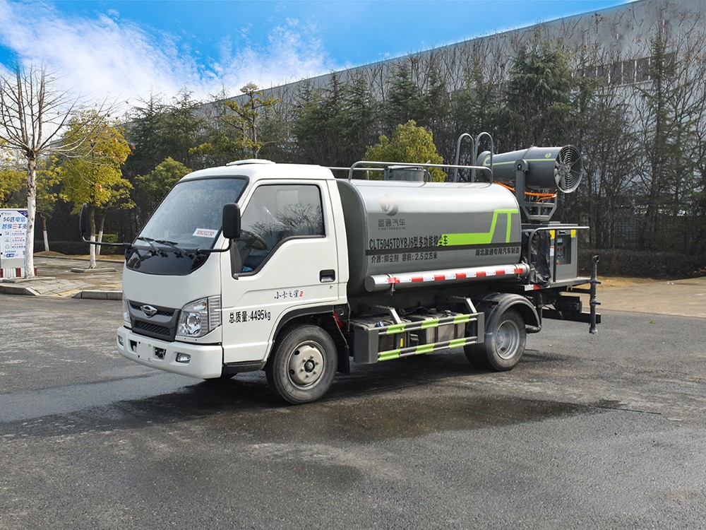3方霧炮灑水車(chē) 整車(chē)型號(hào) CLT5045TDYBJ6 型多功能抑塵車(chē) 2 發(fā)動(dòng)機(jī)型號(hào) Q23-95C60 3 發(fā)動(dòng)機(jī)馬力/功率 全柴 95 馬力/70KW 4 發(fā)動(dòng)機(jī)排量 2300ML 5 變速箱 蒙沃 5 檔箱 6 輪胎規(guī)格 6.00 鋼絲胎 7 軸距 2600 8 總質(zhì)量 4495KG 9 整備質(zhì)量 2700KG 10 額定載質(zhì)量 1665KG 11 整車(chē)尺寸(長(zhǎng)×寬×高) 5.365*1.9*2.6 12 罐體容積 2.7 方 13 燃料種類(lèi) 柴油 14 排放標(biāo)準(zhǔn) 國(guó)六 15 水泵型號(hào) 40/50 16 罐體材質(zhì) Q235 碳鋼產(chǎn)品功能展示 霧炮 后灑 后對(duì)沖 高炮 側(cè)噴