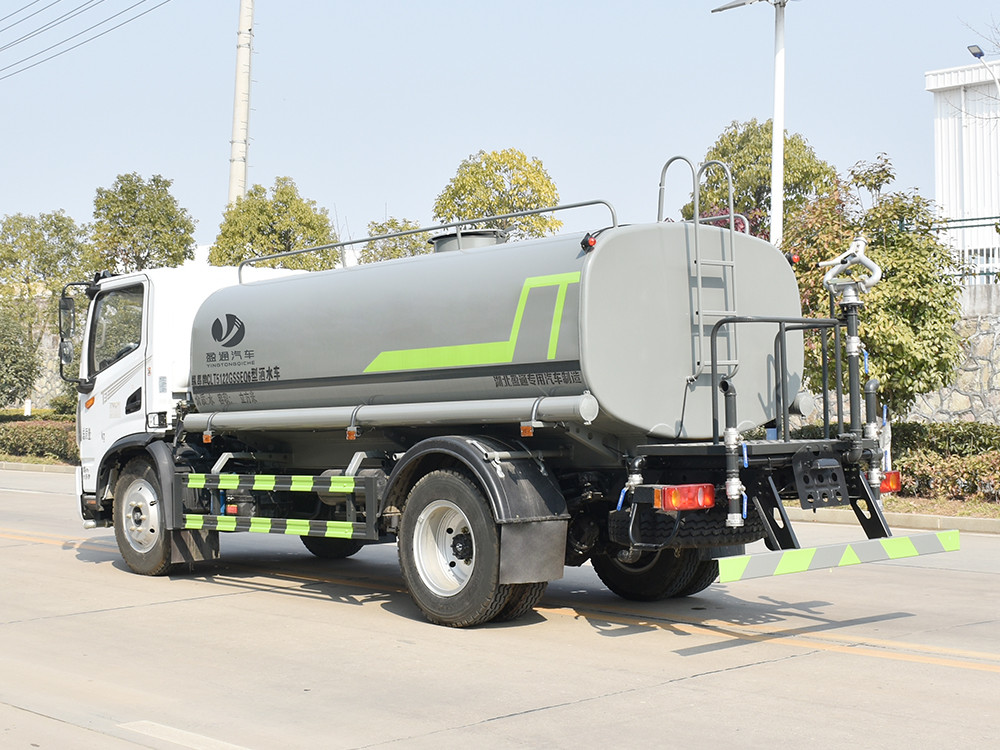 湖北盈通灑水車產(chǎn)品標配前噴(鴨嘴)、后沖、后灑、側(cè)噴、后置式工作 平臺,平臺上配置綠化水炮(可 360°旋轉(zhuǎn),既可以調(diào)成柱狀,也可 以調(diào)成霧狀,更可以調(diào)成直沖狀、大雨、中雨、小雨、毛毛雨),配 備優(yōu)質(zhì)大功率專用灑水泵(可自吸自排,可從河里或池塘抽水到罐體), 取力器,雜物過濾網(wǎng),消防接口,自流球閥系統(tǒng)、取力器、球閥、濾網(wǎng) 均為國家標準產(chǎn)品,主管道加粗,法蘭墊、法蘭盤加厚,大通徑球閥。 整體具備性能優(yōu)良安全可靠、效率高、流量大、維修方便等特點。