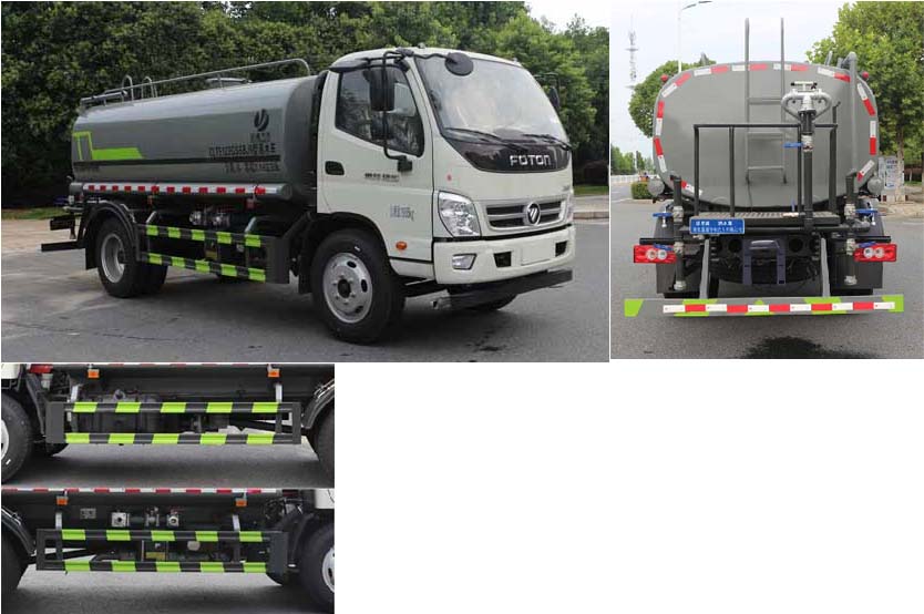 福田10噸灑水車配置: 發(fā)動機云內(nèi) 150 馬力,軸距 3800,萬里揚 6 檔,8.25R20 鋼絲 胎,T-BOX 全國通用,斷氣剎,ABS,原廠空調(diào),電動門窗,中控鎖
