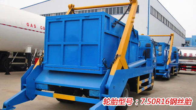 東風多利卡擺臂式垃圾車,多利卡D7底盤,6檔變速箱,朝柴156馬力發(fā)動機,前橋2.5噸、后橋5噸,192mm變截面車架,7.50R16鋼絲胎,帶斷氣剎、ABS。