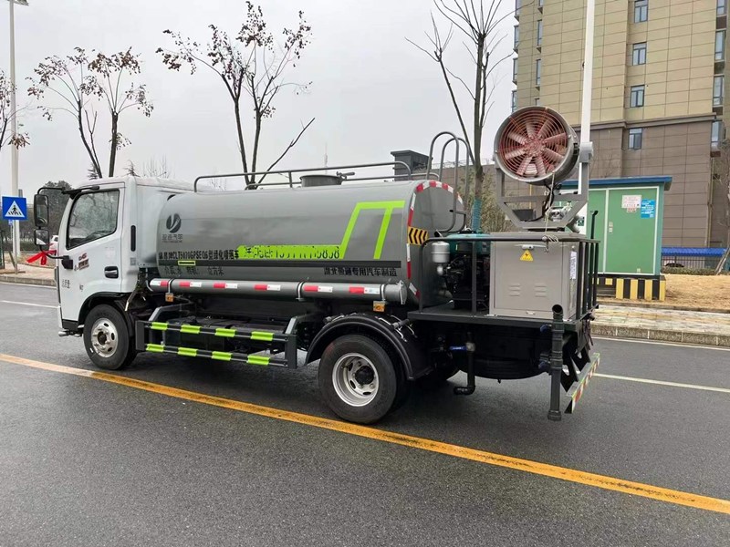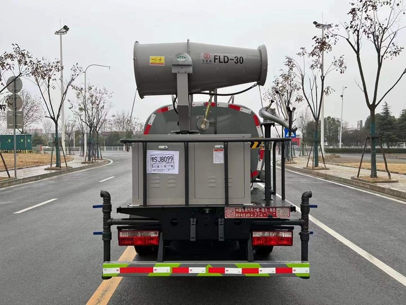 5噸霧炮灑水車專用功能配置:罐體實際容積約為5立方米,采用武鋼優(yōu)質(zhì)碳鋼板卷壓成型,自動焊接。配備專用灑水泵,自吸自排,前噴后灑、側(cè)噴、后工作平臺及灑水高壓炮。灑水泵自吸高度為6米左右,整車灑水寬度14米左右,后工作平臺高壓水槍上下左右360°旋轉(zhuǎn)可調(diào)成:直沖狀、大雨、中雨、小雨、有效射程≥28米,可整車帶接頭、水位計,自流閥。后工作平臺主管道有一個一寸的澆花接口,附送2根3米水管,1個爬梯,兩側(cè)及后保險杠。