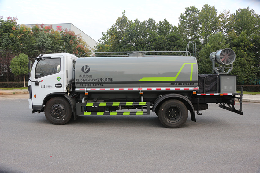 灑水車(chē)前裝有鴨嘴形噴嘴或圓頭沖嘴,后面裝有圓柱形灑水噴嘴或蓮蓬頭噴嘴,后部有工作平臺(tái),裝配有水炮。后部還可裝8個(gè)噴嘴。