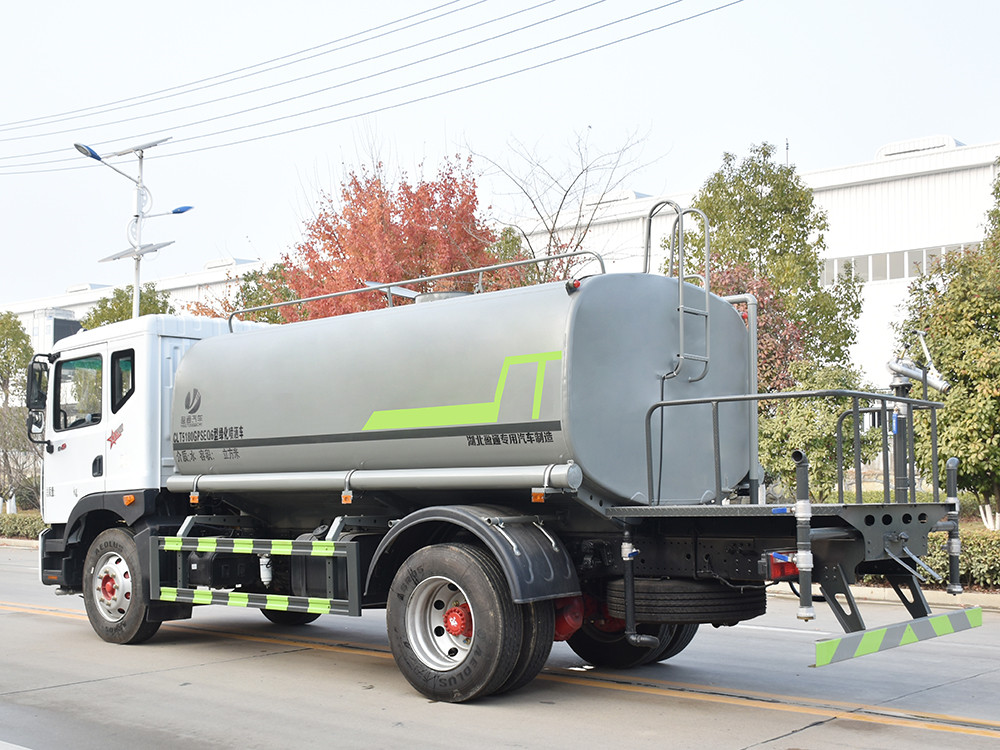 東風 D9 12 方灑水車產品介紹一. 產品簡述 灑水車又稱為噴灑車、多功能灑水車、園林綠化灑水車。灑水車 適合于各種路面沖洗,樹木、綠化帶、草坪綠化,道路、廠礦企業(yè)施工 建設,高空建筑沖洗。灑水車也可以作為運水車使用,最常見的車型 有環(huán)衛(wèi)灑水車、多功能灑水車、綠化灑水車幾大類。 我公司產品標配前噴(鴨嘴)、后沖、后灑、側噴、后置式工作 平臺,平臺上配置綠化水炮(可 360°旋轉,既可以調成柱狀,也可 以調成霧狀,更可以調成直沖狀、大雨、中雨、小雨、毛毛雨),配 備優(yōu)質大功率專用灑水泵(可自吸自排,可從河里或池塘抽水到罐體), 取力器,雜物過濾網(wǎng),消防接口,自流球閥系統(tǒng)、取力器、球閥、濾網(wǎng) 均為國家標準產品,主管道加粗,法蘭墊、法蘭盤加厚,大通徑球閥。 整體具備性能優(yōu)良安全可靠、效率高、流量大、維修方便等特點。