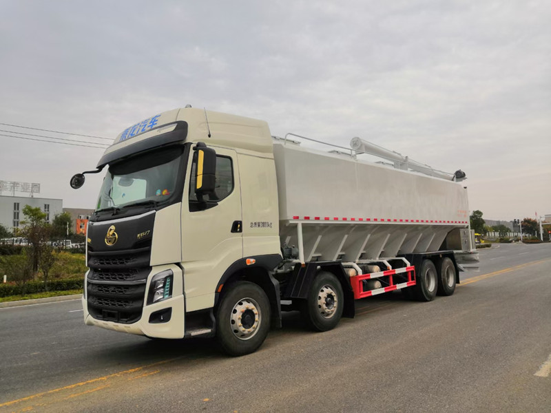 柳汽乘龍前四后八散裝飼料運(yùn)輸車/40方養(yǎng)殖場飼料配送車整車型號(hào):XBZ5310ZSLL6,柳汽H7駕駛室,玉柴460馬力國六發(fā)動(dòng)機(jī),法士特12檔鋁合金變速箱,5.5T雙前橋,440雙后橋,12R22.5,全氣囊懸浮駕駛室,電動(dòng)玻璃、LCD液晶儀表、自動(dòng)空調(diào)、真皮多功能方向盤、定速巡航、ABS、中控鎖、自動(dòng)調(diào)整臂。整車尺寸:12000×2500×3995mm。/40方散裝飼料車