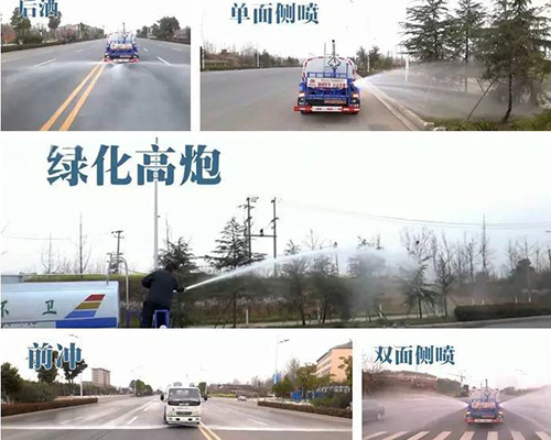 標(biāo)準(zhǔn)配置灑水車主要裝備有:前沖(沖洗公路路面)、后灑(公路路面養(yǎng)護(hù))、側(cè)噴、高位側(cè)花灑(路邊綠化帶優(yōu)化);后工作平臺高壓水炮,可調(diào)節(jié)成柱狀,射程≥28m;也可調(diào)節(jié)成霧狀,射程≥30米,水泵自吸高度:≤7m,灑水寬度:≥15m。側(cè)防護(hù)網(wǎng),自流閥,消防接頭。灑水車水泵為常壓水泵,功能可以抽水、排水。另外根據(jù)用戶要求,可加消防泵、噴霧機(jī)、農(nóng)藥卷盤、農(nóng)藥柱塞泵。罐內(nèi)可以做防腐防銹、電磁閥氣動閥自動放水等****,以滿足不同用戶需求。