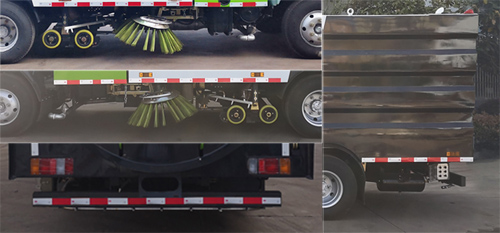 該車(chē)裝備有垃圾箱、水箱、洗掃刷等專用裝置,用于清掃、 清洗垃圾等污物;側(cè)防護(hù)由專用裝置替代,后下部防護(hù)材料為Q235A碳鋼,與副梁采用焊接連接, 截面尺寸:50×120(mm),離地面高度400mm;ABS及其控制器型號(hào)為:1、 CM4XL-4S/4M,生產(chǎn)廠家為:廣州瑞立科密汽車(chē)電子股份有限公司; 2、APG3550500A,生產(chǎn)廠家為:浙江亞太機(jī)電股份有限公司. |