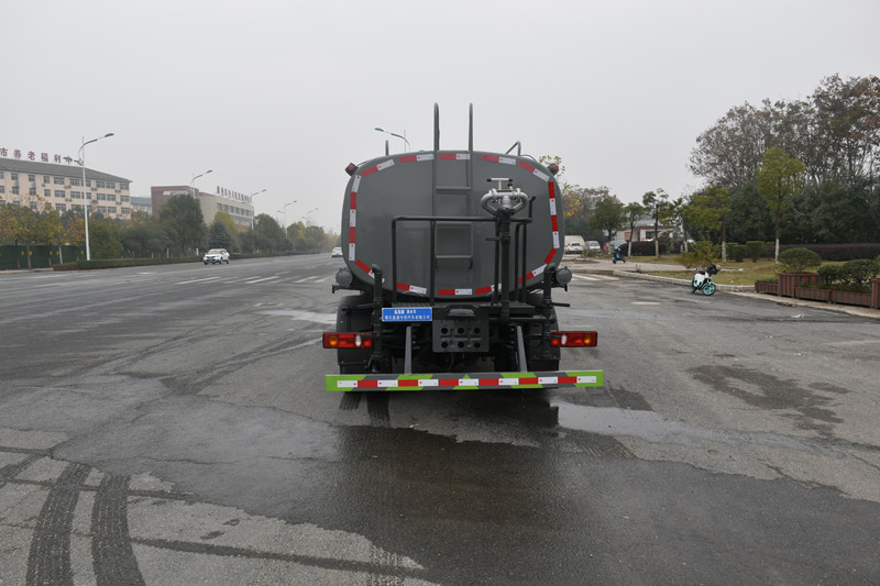 東風(fēng)D6新一代多利卡原裝底盤,玉柴115/朝柴102/云內(nèi)115馬力發(fā)動(dòng)機(jī),3308軸距,5檔變速箱,7.00R16鋼絲胎,罐體容積:4.0立方(裝水4.0噸),新款方形罐體,罐體鋼板采用Q235碳鋼鋼材,前沖后灑、側(cè)噴、平臺(tái)高炮、自流閥及消防接頭可選裝20-35米噴霧機(jī)。