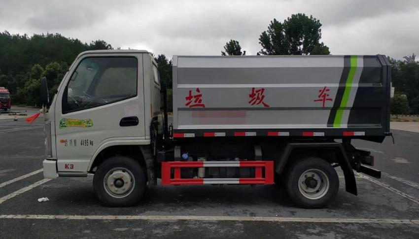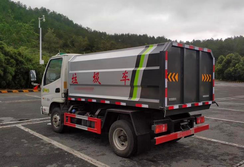 箱體容積3~4立方米,碳鋼邊三底四,國(guó)產(chǎn)油泵、多路閥、取力器、油缸,卸料方式為底部雙杠液壓舉升自卸,駕駛室外操作,鐵桶掛架,后門機(jī)械鎖緊,手動(dòng)開門,可選液壓開門。