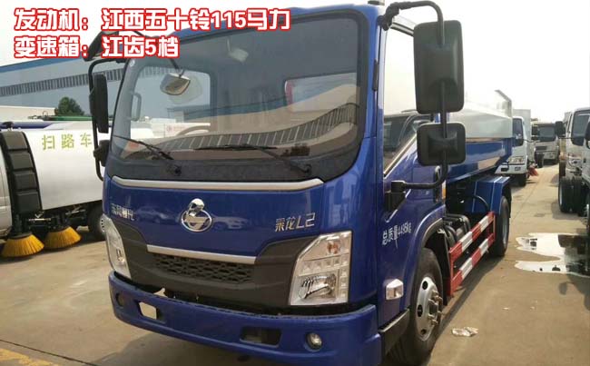 東風柳汽L2掛桶垃圾車,L25單排駕駛室,配江西五十鈴115馬力發(fā)動機,江齒5檔變速箱,Ф265離合,軸距3360,5T后橋/5.571,190(5)車架,120L塑料油箱,7.00R16,固定式駕駛室懸置、扭桿式翻轉、電動玻璃升降器、遙控鑰匙+中控鎖(四鎖合一)、液晶儀表、空調、斷氣剎、ABS。