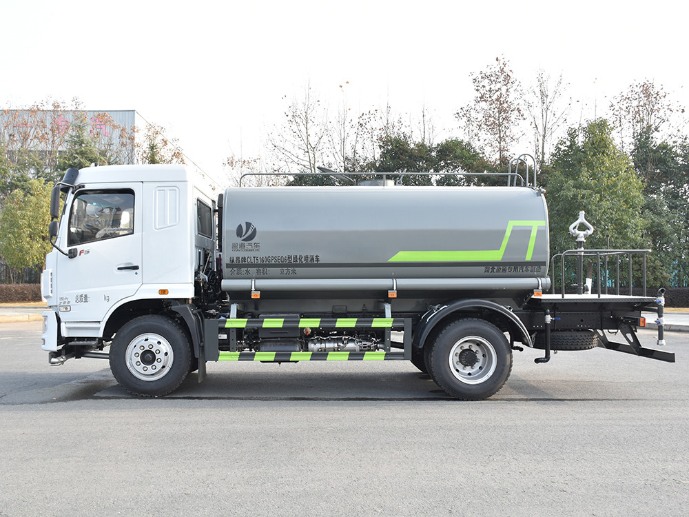 12方灑水車價格多少-灑水車配置: 1、罐體約為 12 方, 2、邊燈帶電,罐體尾部上方標配 2 個紅色示寬燈, 3、標配前噴為鴨嘴直沖,標配后沖,用戶可根據(jù)自己的需求,來調 整對沖位置。 4、沖孔平臺(承載能力加強),炮筒后蓋為定制型螺栓卡扣, 5、前噴、后沖、后灑、側噴,綠化高炮開關球閥均采用工程專用 50 大通徑銅球閥, 6、新式軸承式水炮,更加耐用, 7、60-90 型水泵, 8、防腐法蘭墊片, 9、鋁制后灑,不易炸開 10、罐體自動焊(美國林肯焊機及電源),拼板自動焊接,封頭環(huán) 縫焊接,無氣孔,焊縫美觀。