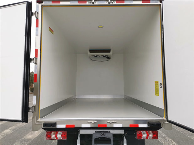 國六江淮駿鈴V5藍(lán)牌冷藏車廂體配置為:采用斷橋隔熱工藝,整體框架結(jié)構(gòu)制作,廂體內(nèi)、外壁材料為玻璃鋼板,采用高密度保溫層,廂板內(nèi)帶有骨架,廂體厚度80mm,門框,門飾件、包角全部使用不銹鋼材質(zhì)。最新款鋁合金包邊型材,廂體內(nèi)采用LED照明燈及廂體示寬燈;門框密封條為橡膠材質(zhì),后門梁帶加厚防撞塊,加厚型不銹鋼鉸鏈及鎖件。車體副梁采用510L高強(qiáng)度鋼制作,底板為鋁花紋板,車廂后門帶一個上車扶手,其余標(biāo)配;