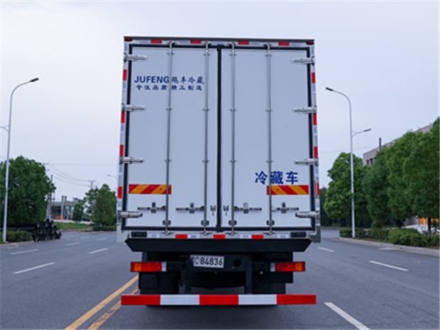 東風(fēng)天錦8米6冷藏車廂體配置為:斷橋隔溫工藝,整體結(jié)構(gòu)框架,內(nèi)外面料為3mm新款啞光玻璃鋼夾保溫層真空復(fù)合而成,廂體厚度為8cm,最新款鋁合金包邊型材,型材局部厚度為4mm(鋼制鉚釘加固),廂體內(nèi)部采用2個(gè)LED照明燈及廂體示寬燈,后門框不銹鋼材質(zhì),門框密封條為三元乙丙橡膠材質(zhì),加厚型不銹鋼合頁(yè)及鎖件;副梁為Q700車用大梁鋼,15mm厚大梁墊皮,加裝防撞膠塊,不銹鋼門鎖件,配后雙開門,副駕駛一側(cè)居中靠前開單側(cè)門一個(gè),帶2個(gè)排水孔。