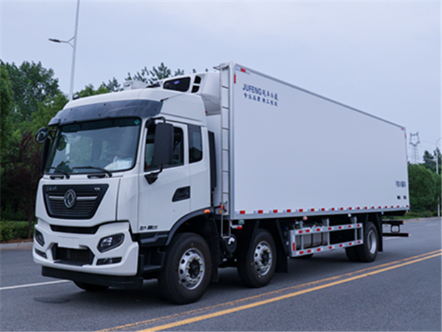 東風(fēng)天錦8米6冷藏車基本參數(shù):整車外形尺寸:9150,9900,10800,12000×2600×3990mm,車廂凈空尺寸可選為:6800,7680,8580,9680×2440×2450mm,車廂容積約為40,46,51,57立方,總質(zhì)量為:25000Kg,整備質(zhì)量為:10440Kg,額定質(zhì)量為:14805Kg.國(guó)六東風(fēng)柴油發(fā)動(dòng)機(jī),7.5L排量,300馬力發(fā)動(dòng)機(jī),陜齒9檔變速箱,整車型號(hào)為:DFH5240XLCE。