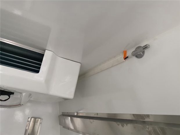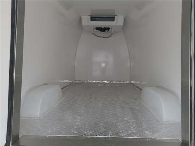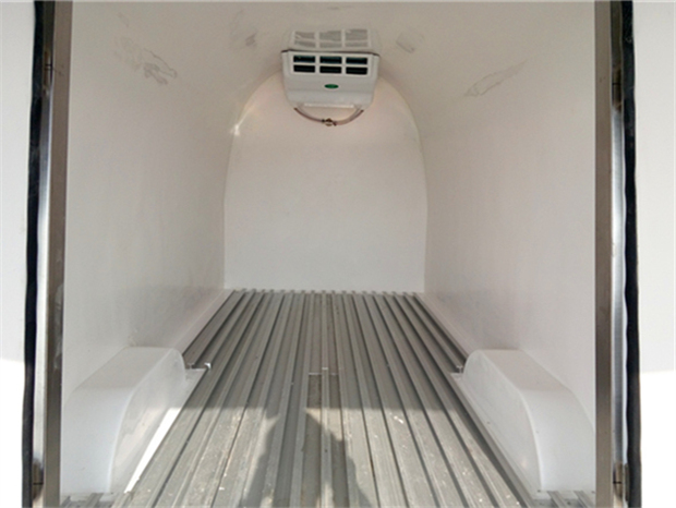 福田G7冷藏車車廂配置為:廂體采用內外優(yōu)質玻璃鋼板,內膽圓弧式廂體,地板為鋁花紋板,底板和四周廂板加裝通風槽,不銹鋼門框,鎖件。