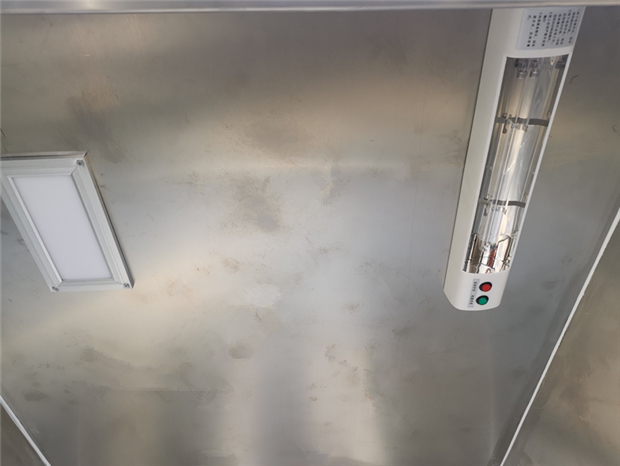 福特全順汽油版疫苗冷鏈車車廂配置: 保溫廂內(nèi)板為304不銹鋼板,夾保溫層制作,廂體底板和四周廂板安裝通風(fēng)槽。廂內(nèi)帶LED照明燈,溫濕度顯示記錄儀,紫外線消毒燈,外場(chǎng)照明燈燈配置。不銹鋼門框,鎖件。