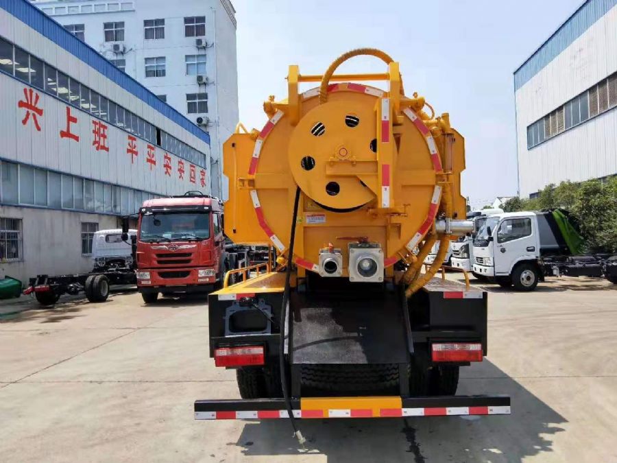 水罐3方,污罐7方,水罐采用4mm武鋼優(yōu)質碳鋼制作,污罐采用6mm武鋼優(yōu)質鋼板制作,配SK-9水循環(huán)泵/8噸油真空泵(根據客戶需求選裝),170流量高壓泵,24兆帕壓力,真空防溢閥,真空壓力表,視污窗,水罐焊接在罐體兩側,水污罐體可液壓舉升自卸,后開蓋可液壓開啟,配60米高壓軟管,10個大小不同高壓噴頭,8米吸污管,尾部100mm吸污口,100mm排污口(可根據客戶需求加大),帶免征,環(huán)保公告。