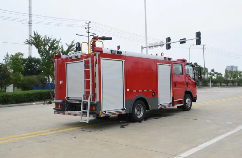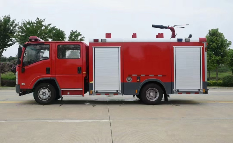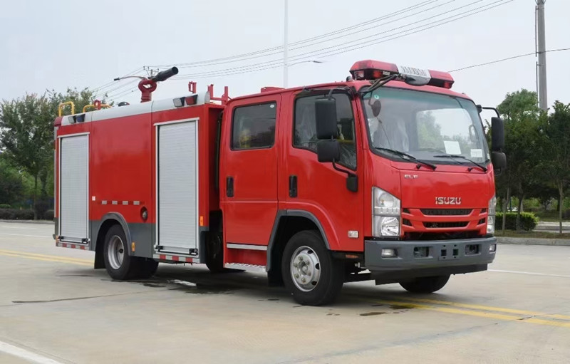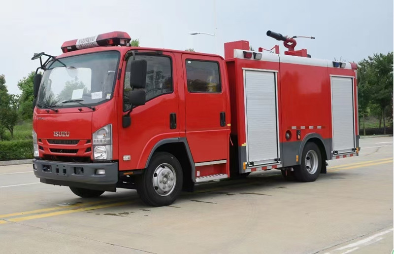 重慶五十鈴2-3噸消防車慶鈴QL1070A6HWY底盤改裝,平頭雙排駕駛室,液壓翻轉(zhuǎn),五十鈴4KH1CN5LS發(fā)動機,98馬力,國五排放,罐體容積2-3立方米;整車結(jié)構(gòu)緊湊,方便靈活,動力性能好,車速高,能自由進出鄉(xiāng)村狹窄道路及小區(qū),具有大型消防車的全套消防功能,上裝箱體的上裝骨架全部采用引進歐洲技術(shù)生產(chǎn)的鋁合金型材制造,整車的重量減少,機動性能和整車載重量提高。除了裝備消防水泵及器材以外,還設(shè)有較大容量的貯水罐及水槍、水炮等?蓪⑺拖廊藛T輸送至火場獨立進行撲救火災。也可以從水源吸水直接進行撲救,或向其他消防車和滅火噴射裝置供水。在缺水地區(qū)也可作供水、輸水用車,主要適用于大中城鎮(zhèn)、鄉(xiāng)村狹窄街道、城市小區(qū)、繁忙的批發(fā)市場等場所的一般物質(zhì)滅火,閑暇時可用于園林噴灌、道路清灑。