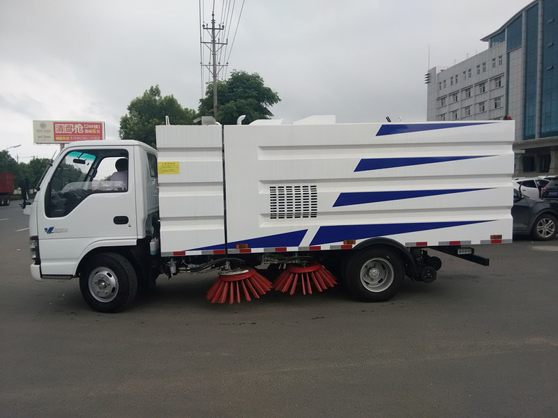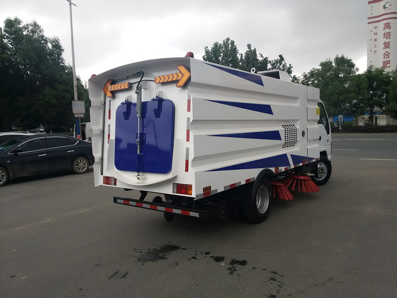 該掃路車采用重慶五十鈴型國五二類底盤改裝,加裝副發(fā)動機、風機、清水箱、垃圾箱、左右立掃、后置吸盤,掃盤降塵系統(tǒng),液壓系統(tǒng)、專用裝置電控系統(tǒng)和副車架等改裝而成。