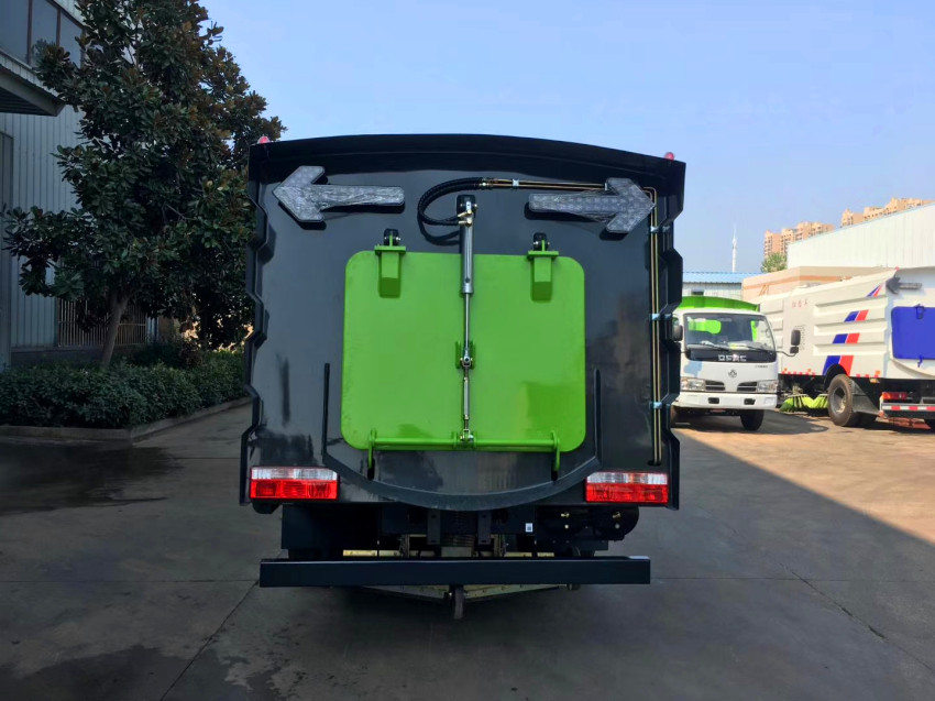 濾網板,能有效地防止樹葉、塑料袋之類的輕飄物堵塞風口及灰塵的排出。內置噴霧壓塵裝置,最大限度的利用了垃圾箱裝載垃圾的空間。廂體采用傾翻卸料。