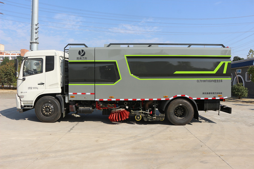 1.CLT5180TXSD6型洗掃車適用于城市道路、高速公路、廣場(chǎng)、機(jī)場(chǎng)、碼頭、遂道、橋梁、隔離墻避、路緣和路緣石立面的機(jī)械化清洗、清掃、噴霧降塵等清潔作業(yè)。具有路面清洗、路面清掃、路緣清洗、路緣和路緣石立面洗刷、低壓沖洗、噴霧除塵等多功能。有“全洗掃”、 “右洗掃”、 “全掃”、 “右掃”4種作業(yè)模式可選擇。選擇“全洗掃”模式清洗廣場(chǎng)和路面,清洗效率高效果好,洗凈率達(dá)90%以上。選擇“左洗掃”或“右洗掃”模式清洗路面和路緣、洗刷路緣石立面。需要進(jìn)行路面清掃或路面保潔作業(yè)時(shí),可選擇掃路模式。需要噴霧除塵時(shí),可開啟噴霧裝置,進(jìn)行噴霧除塵作業(yè)。可以像灑水車一樣對(duì)路面進(jìn)行低壓沖洗作業(yè)。