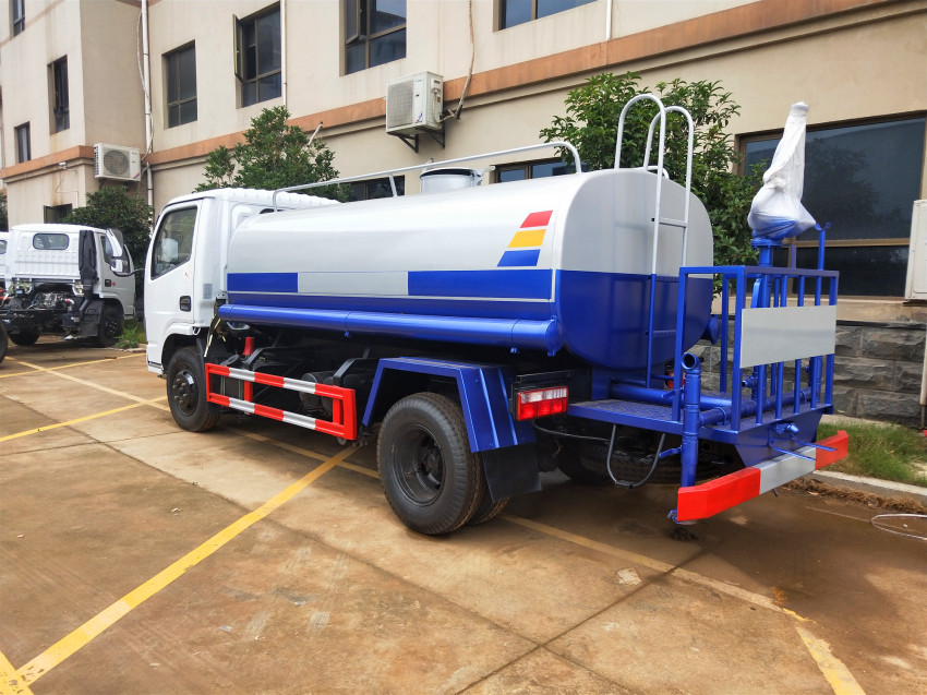 罐體容積:5立方米,鋼板為4mm碳鋼Q235材質(zhì)專(zhuān)用容積版制作,罐內(nèi)隔板具有防波作用,以減輕汽車(chē)行駛時(shí)罐體液體沖擊;配大功率專(zhuān)用灑水泵,泵可自吸自排;前封頭帶水位計(jì),后平臺(tái)主管路帶1寸澆花接口,后爬梯,帶1個(gè)消防接頭,帶1個(gè)自流閥,1個(gè)過(guò)濾裝置。