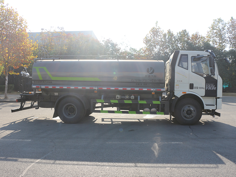 標準配置灑水車主要裝備有:前沖(沖洗公路路面)、后灑(公路路面養(yǎng)護)、側(cè)噴、高位側(cè)花灑(路邊綠化帶優(yōu)化);后工作平臺高壓水炮,可調(diào)節(jié)成柱狀,射程≥28m;也可調(diào)節(jié)成霧狀,射程≥30米,水泵自吸高度:≤7m,灑水寬度:≥15m。側(cè)防護網(wǎng),自流閥,消防接頭。灑水車水泵為常壓水泵,功能可以抽水、排水。另外根據(jù)用戶要求,可加消防泵、噴霧機、農(nóng)藥卷盤、農(nóng)藥柱塞泵。罐內(nèi)可以做防腐防銹、電磁閥氣動閥自動放水等****,以滿足不同用戶需求。