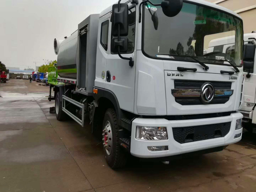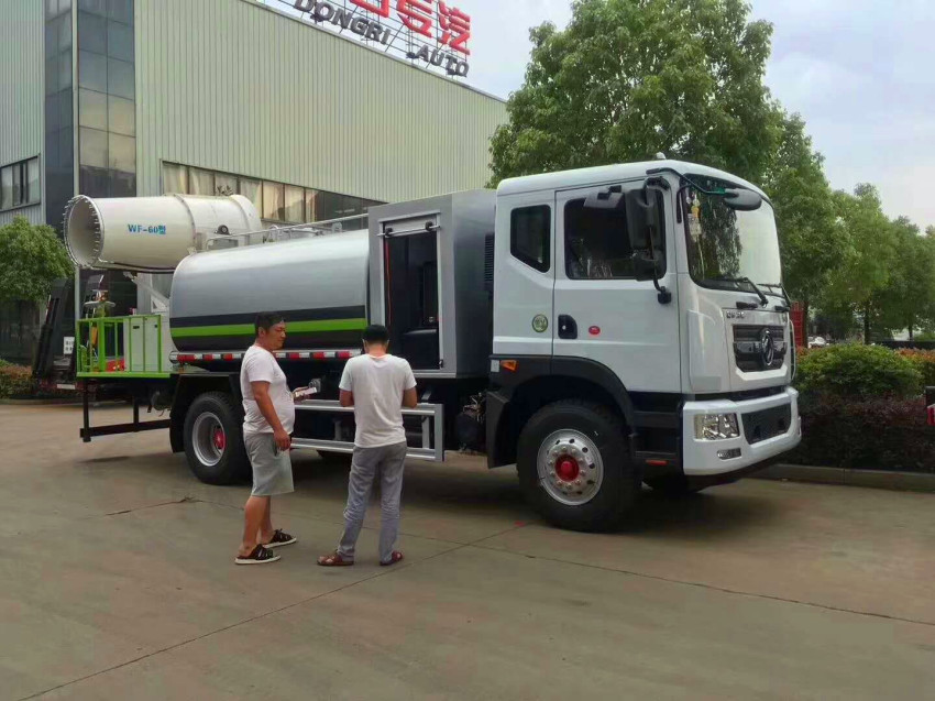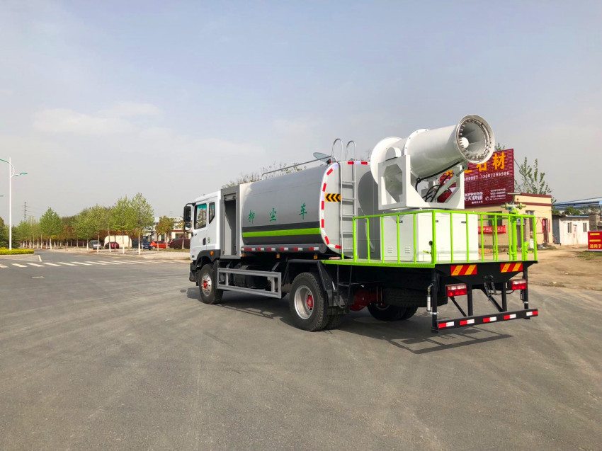 上裝配置:罐體容積為 15-18 立方多功能抑塵灑水車,選配風(fēng)送式霧炮機(jī)組射程50米、60米、80米、100米、120米,罐體鋼板為4mm碳鋼Q235材質(zhì),罐內(nèi)隔板具有防波作用,以減輕汽車行駛時(shí)罐體液體沖擊,罐體及整車外形尺寸按照公告。帶大功率專用灑水泵,泵可自吸自排,整車前沖、后灑、側(cè)噴、帶65消防接口,后平臺(tái)配CLW-50、CLW-60、CLW-80、CLW-100、CLW-120型風(fēng)送式霧炮機(jī)組;罐體前封頭配大功率柴油發(fā)電機(jī)組;遠(yuǎn)程遙控系統(tǒng)控制;霧炮機(jī)自動(dòng)旋轉(zhuǎn)角度0-360°。后平臺(tái)帶綠化灑水炮,灑水炮可全方位旋轉(zhuǎn),可連續(xù)調(diào)成直沖狀、大雨、小雨、毛毛雨;前封頭帶水位計(jì),后平臺(tái)主管路帶1寸澆花接口,后爬梯。帶兩根輸水管及陰陽端。罐體顏色:銀/灰/綠,罐體兩側(cè)噴“多功能抑塵車”字樣,貼反光標(biāo)示。