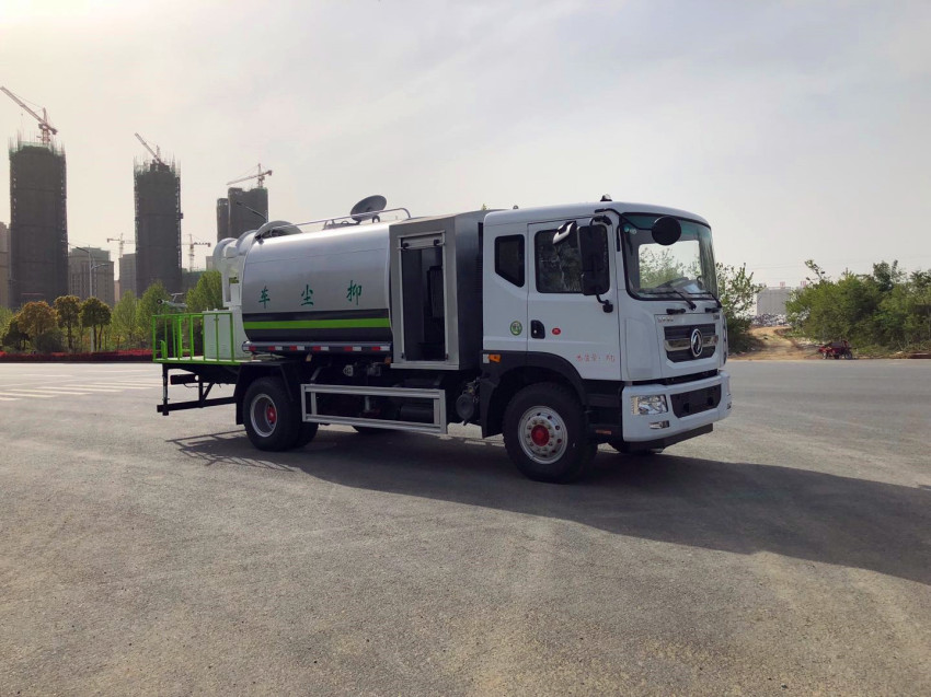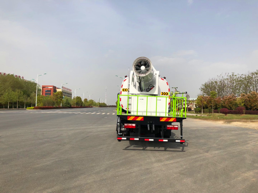 上裝配置:罐體容積為 10-12 立方多功能抑塵灑水車,選配風(fēng)送式霧炮機(jī)組射程50米、60米、80米,罐體鋼板為4mm碳鋼Q235材質(zhì),罐內(nèi)隔板具有防波作用,以減輕汽車行駛時(shí)罐體液體沖擊,罐體及整車外形尺寸按照公告。帶大功率專用灑水泵,泵可自吸自排,整車前沖、后灑、側(cè)噴、帶65消防接口,后平臺(tái)配CLW-50、CLW-60、CLW-80型風(fēng)送式霧炮機(jī)組;罐體前封頭配大功率柴油發(fā)電機(jī)組;遠(yuǎn)程遙控系統(tǒng)控制;霧炮自動(dòng)旋轉(zhuǎn)角度0-360°。后平臺(tái)帶綠化灑水炮,灑水炮可全方位旋轉(zhuǎn),可連續(xù)調(diào)成直沖狀、大雨、小雨、毛毛雨;前封頭帶水位計(jì),后平臺(tái)主管路帶1寸澆花接口,后爬梯。帶兩根輸水管及陰陽端。罐體顏色:白/蘭,罐體兩側(cè)噴“多功能抑塵車”字樣,貼反光標(biāo)示。