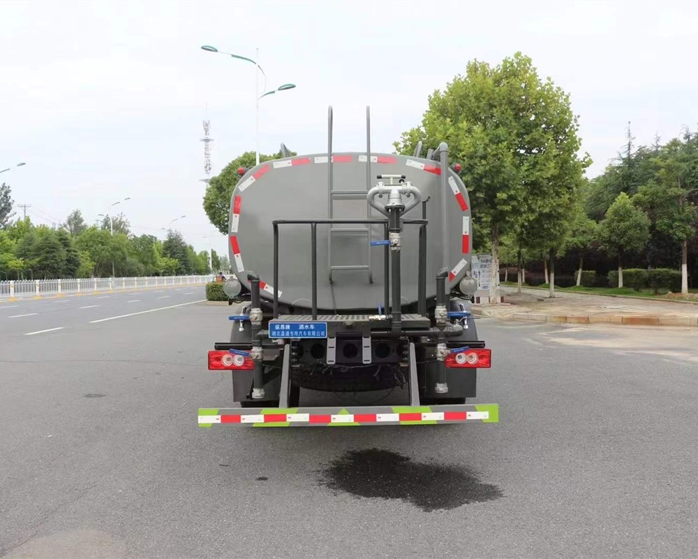 灑水車專用功能配置:罐體實(shí)際容積約為9.35立方米,(罐體有效參數(shù)7.56立方米、額定載質(zhì)量7200kg、)采用武鋼優(yōu)質(zhì)碳鋼板卷壓成型。配備專用灑水泵,自吸自排,前噴后灑、側(cè)噴、后工作平臺及灑水高壓炮。灑水泵自吸高度為6米左右,整車灑水寬度14米左右,后工作平臺水炮可調(diào)成:直沖狀、大雨、中雨、小雨、毛毛雨,有效射程≥28米,整車帶接頭、水位計(jì),自流閥。后工作平臺主管路帶1寸澆花接口,附送2根3米水管,1個爬梯,兩側(cè)及后保險杠。 |