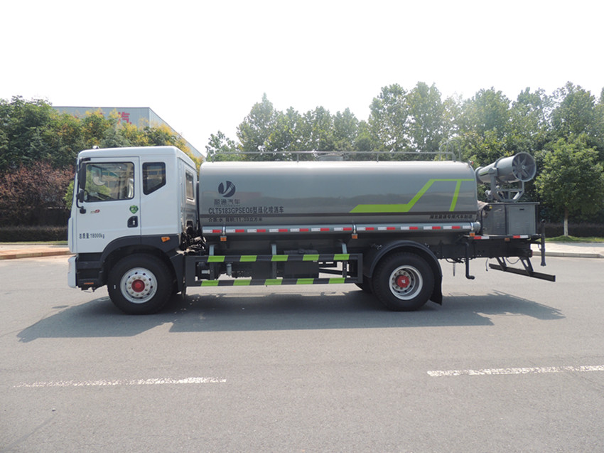 園林綠化灑水車功能配置:罐體用4MM碳鋼板制作,罐內(nèi)隔板具有防波作用,以減低汽車行駛時(shí)罐體液體的沖擊。整車帶一個(gè)專用灑水泵(垂直最大吸程6米),灑水寬度14米,射程28米。多功能灑水車配備2個(gè)前沖(噴)(能將路面泥巴、塵土、垃圾沖干凈);2個(gè)后灑(能均勻地將水灑在路面,一次灑水寬度14米)、2個(gè)側(cè)噴(花灑)(能均勻地將路旁綠化帶澆灌)、帶1個(gè)后工作平臺(tái),平臺(tái)上安裝1個(gè)綠化灑水高炮(灑水炮可全方位旋轉(zhuǎn),可連續(xù)調(diào)成直沖狀、大雨、小雨、毛毛雨,霧狀可調(diào)節(jié)沖洗高大樹木),引水時(shí)間<5min,流量90m3/h。帶1個(gè)消防接頭,帶1個(gè)自流閥,1個(gè)過(guò)濾裝置、人性化爬梯及側(cè)防護(hù)欄,安裝灑水音樂(lè)喇叭。