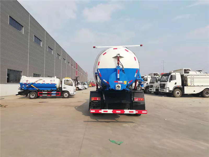 吸污車專用部分由取力器、傳動軸、真空吸污泵、壓力罐體、液壓部分,管網(wǎng)系統(tǒng)、真空壓力表、視糞窗、洗手裝置等組成,隨車配置大功率真空吸污泵和優(yōu)質(zhì)液壓系統(tǒng),罐體封頭一次壓鑄成型、罐體可后開、雙頂自卸。罐內(nèi)污物可通過后蓋直接傾倒,具有真空度高(比吸糞車的吸力更大)、噸位大、效率高、用途更廣泛的特點。