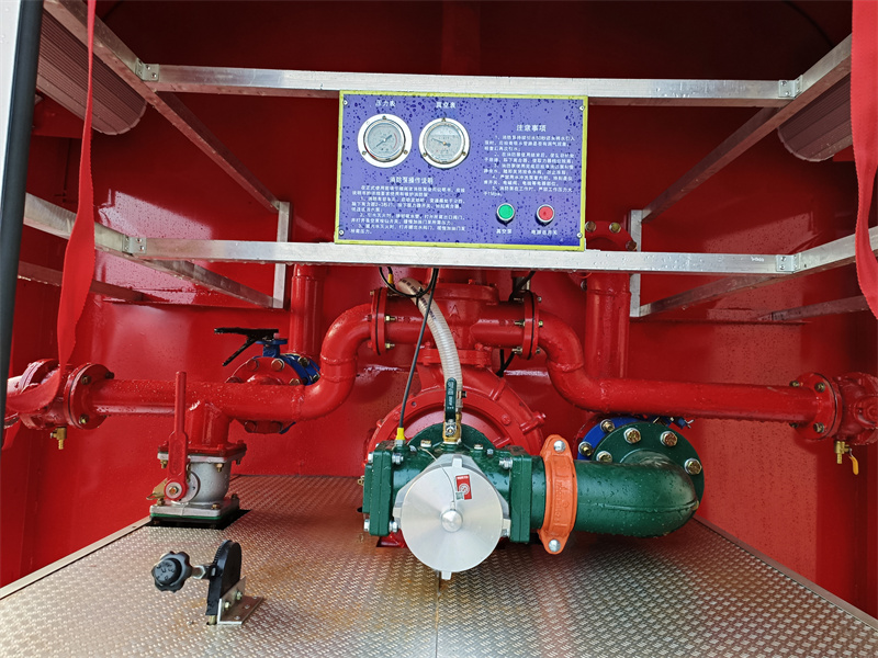 造型美觀、操作簡單、維護保養(yǎng)方便等特點 ◇泵殼采用導(dǎo)葉式,葉輪采用平衡環(huán)、平衡孔結(jié)構(gòu),大大減小了軸向力及徑向 力,提高了壽命 ◇各項性能指標(biāo)均符合GB6245-2006標(biāo)準(zhǔn),并通過國家消防裝備質(zhì)量監(jiān)督檢驗中心 型式試驗。 ◇是目前國內(nèi)消防泵的升級換代產(chǎn)品,并可與國外同類產(chǎn)品媲美 ※取力器 型式 夾心式(全功率) 操縱 電磁閥控制(電動操控) 冷卻方式 強制式可調(diào)式水冷 潤滑方式 飛濺式油潤滑※前沖 標(biāo)配前置對沖圓錐噴嘴,沖洗寬度≥25m圓錐噴嘴角度可以任意調(diào)節(jié),可將中間車道的垃圾沖到兩 側(cè),方便對垃圾進行清掃收運,同時實現(xiàn)對多車道灑水塵。 ※后灑 雙側(cè)后灑,灑水面積15m2。主管道加粗,大通徑球閥,加厚法蘭盤、加厚防腐法蘭墊,消防水炮霧狀射程約15米,柱狀射程 ≥45米,流量達到20L/s,可用作消防救援滅火。