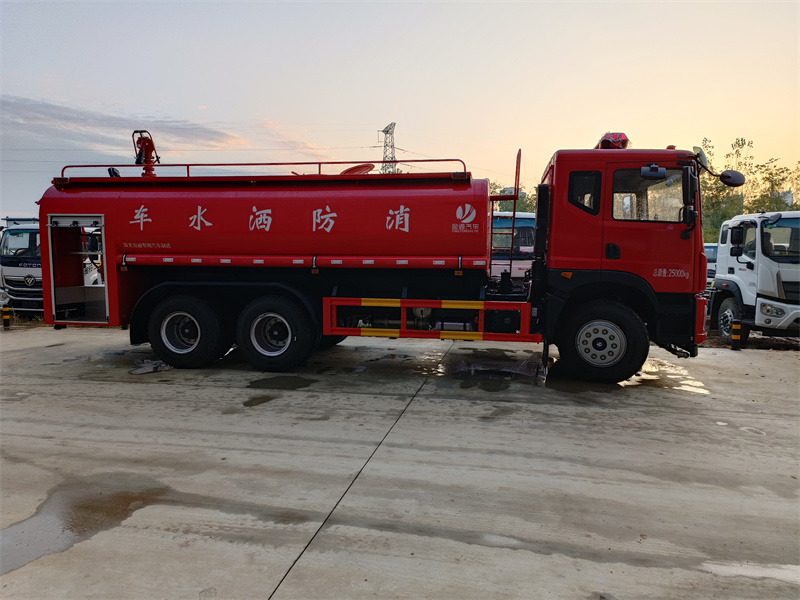 注:車輛顏色可根據(jù)需求定 一. 產(chǎn)品簡述 消防灑水車參數(shù) 消防灑水車,又稱消防灑水兩用車、灑水消防兩用車、森林消防灑水車、學(xué)校消防灑水車、機 場消防灑水車、社區(qū)消防灑水、街道及鄉(xiāng)鎮(zhèn)和鄉(xiāng)村消防灑水功能。是一款集消防車和灑水車于一體的 兩用車,是介于消防車與灑水車之間,具有消防灑水一體化用途,與消防車相比雖缺少器材箱,但與 消防車的射程相同,具有同樣的消防功能。 功能介紹:與灑水車相比,繼承了灑水車的全部功能,同時也彌補了灑水車射程小,壓力小等 問題。消防灑水車除了裝備消防水泵及器材以外,還設(shè)有較大容量的貯水罐及水槍、水炮等?蓪⑺ 和消防人員輸送至火場獨立進行撲救火災(zāi)。它也可以從水源吸水直接進行撲救,或向其他消防車和滅 火噴射裝置供水。優(yōu)于消防車的功能:因為沒有消防車器材箱,底盤高度及車輛寬度更適應(yīng)山間、鄉(xiāng) 鎮(zhèn)、鄉(xiāng)村的路況,是森林消防、鄉(xiāng)鎮(zhèn)和鄉(xiāng)村消防的有利消防工具。