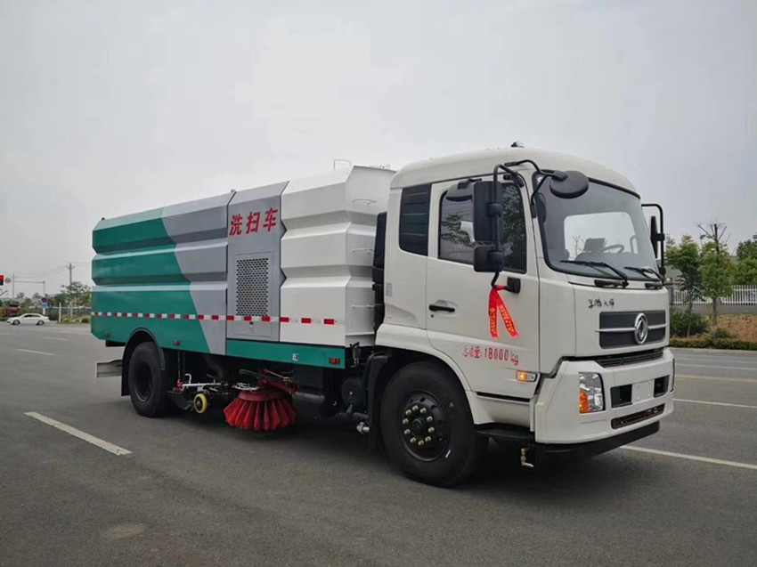 洗掃車具有路面清洗、路面清掃 路緣和路緣石立面洗刷、低壓沖洗、噴霧除塵等多功能。有“全洗掃”、 “左洗掃”、 “右洗掃”、 “全掃”、 多種作業(yè)模式可選擇。選擇“全洗掃”模式清洗廣場和路面,清洗效率高效果好,洗凈率達95%以上。選擇“左洗掃”或“右洗掃”模式清洗路面和路緣 。需要進行路面清掃或路面保潔作業(yè)時,可選擇掃路模式。需要噴霧除塵時,可開啟噴霧裝置,進行噴霧除塵作業(yè)?梢韵駷⑺囈粯訉β访孢M行低壓沖洗作業(yè)。