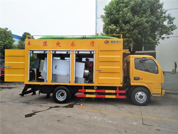 污水處理車:主要用于化糞池的快速處理,是替代吸污吸糞車的一款全新車型,該車不同于吸污吸糞車處理時需要來回運輸,可直接通過車上的滾筒式分離廂將化糞池的污物快速渣液分離,邊吸邊排,化糞池污物當(dāng)場處理,每小時可處理80一100立方污水,分離后的污水可排入市政污水管道內(nèi),廢渣可裝袋運走,即節(jié)省了來回運輸?shù)臅r間,也省去了運輸途中的費用,可上藍(lán)牌C證就可以駕