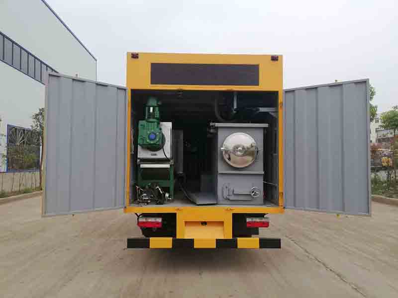 3、吸污凈化車需將藥水?dāng)嚢韬煤笤龠M(jìn)行疊螺脫水作業(yè),沒有藥 水將不能對污水進(jìn)行脫水。