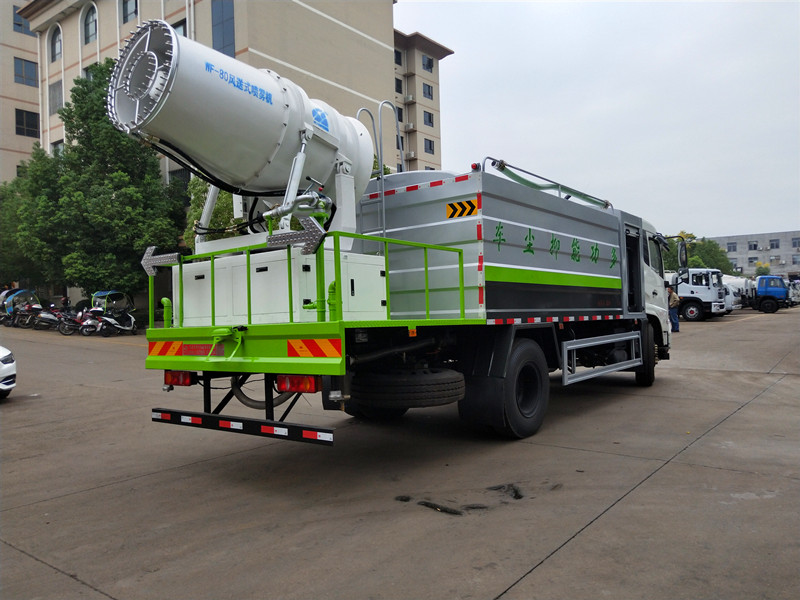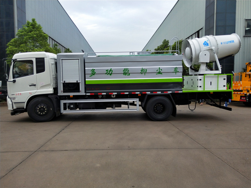 抑塵車(chē)吸程≧7米,灑水寬度≧14-16米,射程≧25-30米,引水時(shí)間<5min,流量60m3/h。前沖(噴)、后灑、帶側(cè)噴(花灑)、帶后工作平臺(tái)、平臺(tái)上安裝綠化灑水高炮(炮噴射形狀可調(diào)節(jié):直沖、大雨、中雨、毛毛雨、霧狀、可連續(xù)調(diào)節(jié),360°旋轉(zhuǎn)),配消防接口,自流閥,濾網(wǎng),帶自吸自排功能。配備大功率專(zhuān)用灑水泵,泵可自吸自排,安裝過(guò)濾網(wǎng),帶消防接口,可通過(guò)消防栓進(jìn)水,帶自流閥,此車(chē)尾部帶大功率噴霧炮,霧炮射程可選裝50-100米,帶獨(dú)立柴油發(fā)電機(jī)組。