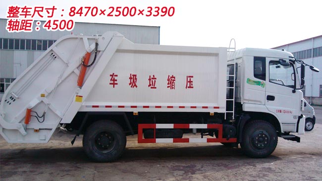 東風(fēng)特商壓縮式垃圾車,采用東風(fēng)D193-3駕駛室,配備東風(fēng)康明斯發(fā)動(dòng)機(jī),8JS85變速箱,軸距4.5米。3.6噸前橋,10噸后橋,10.00R20鋼絲胎,帶ABS?杉友b行車記錄儀,電動(dòng)玻璃,兩點(diǎn)懸浮,液壓反轉(zhuǎn)。