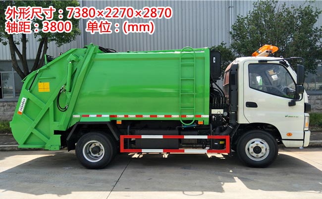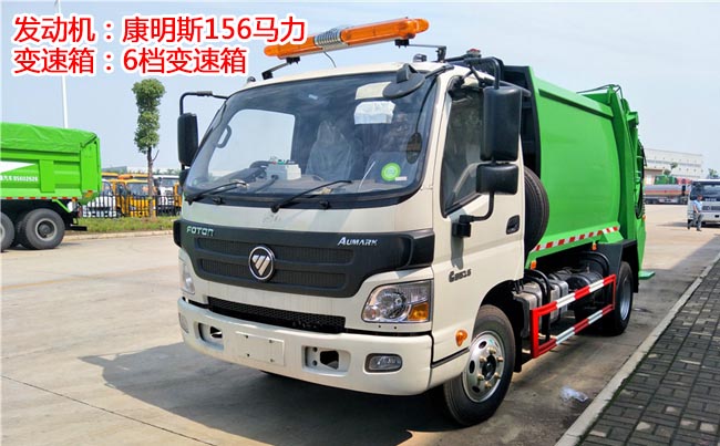 福田歐馬可壓縮式垃圾車,2.05米寬?cǎi){駛室、單排前翻、康明斯154馬力,6檔變速箱、軸距3.8米,6噸后橋、7.50R16鋼絲胎、動(dòng)力轉(zhuǎn)向、空調(diào)、定速巡航、離合助力、斷氣剎、ABS。