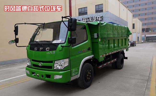 時風藍牌自卸式垃圾車,采用工程自卸底盤,風順一單排駕駛室,3280軸距,一汽錫柴130馬力(帶DPF),萬里揚五擋帶副變速箱,7.50R16朝陽鋼絲輪胎,原廠空調(diào),200雙層大梁,七噸后橋,方向助力,斷氣剎,離合助力,整車尺寸(mm):長5850、寬2045、高2100。